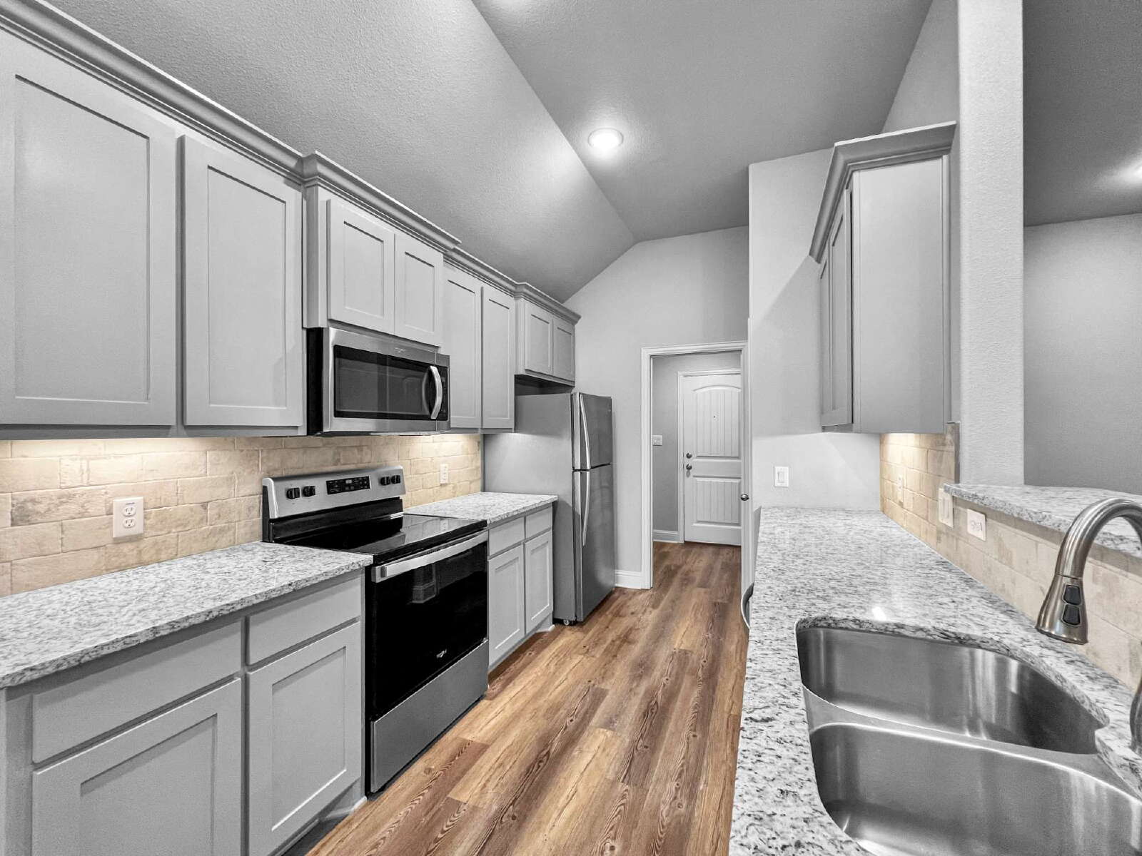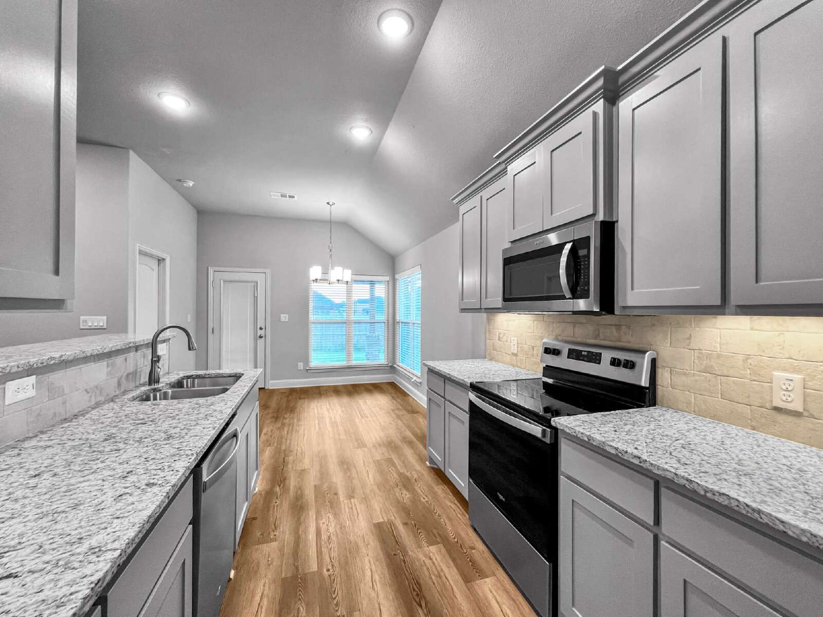 One Story, 3 Bedroom, 2 bath, 2 car garage. Covered porch on front & back. Granite countertops & maple cabinets. Refrigerator is provided. Primary bath has his and her walk in closets, double sinks, linen closet and custom mirrors. SS appliances, 2-inch faux wood blinds, brushed nickel fixtures, vinyl wood flooring throughout. NO CARPET!! Close to Austin College, Texas Instruments, Globitech and the Sherman High School. Both a city park and golf course are within a few minute drive. NO VOUCHERS. School attendance zones and room measurements are deemed reliable but not guaranteed.